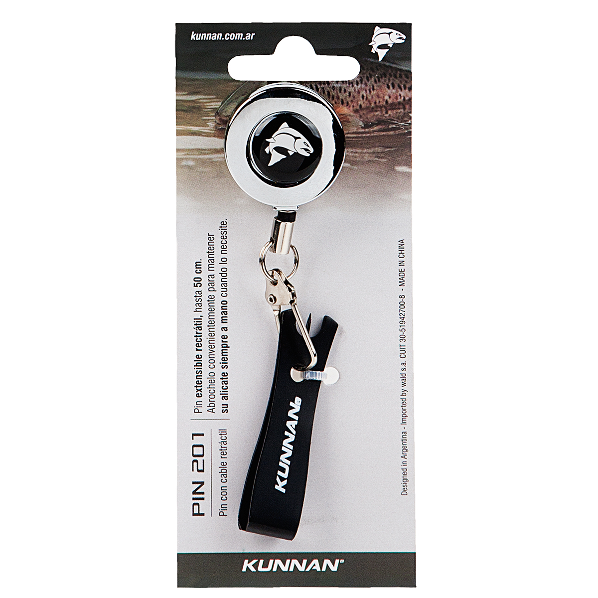 Pin Kunnan con alicate desata nudos y cable retráctil Pin extensible retráctil, hasta 50 cm. Abróchelo convenientemente para mantenerlo siempre a mano.